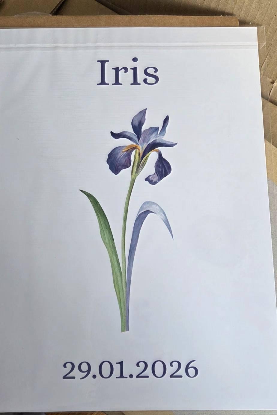 February Birth Flower Personalised Wall Art Print, Iris Birth Flower Print, Nursery Decor, Newborn Gifts