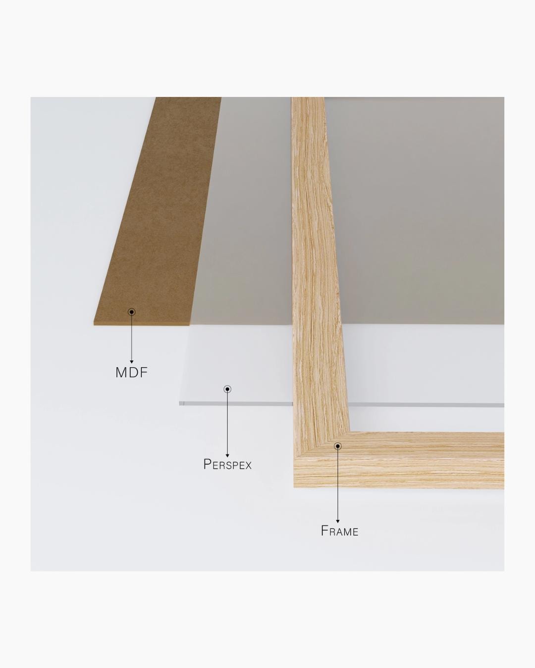 All frames are equipped with a high-clarity shatterproof perspex sheet, providing optimal protection for your print.